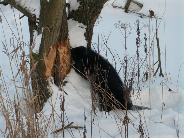 «Він напевно кілограм з 35», - каже підприємець. Додає, що чорних бобрів ще не бачив, зазвичай вони коричневі. Гризун підійшов до дерева і почав його гризти.