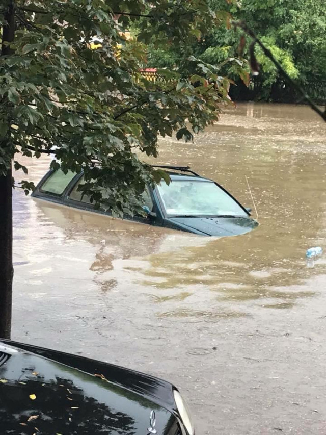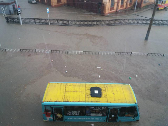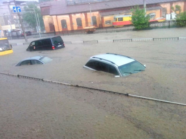 Унаслідок сильної зливи затопило частину Львова, рівень води на окремих вулицях досягнув рівня номерних знаків автомобілів.