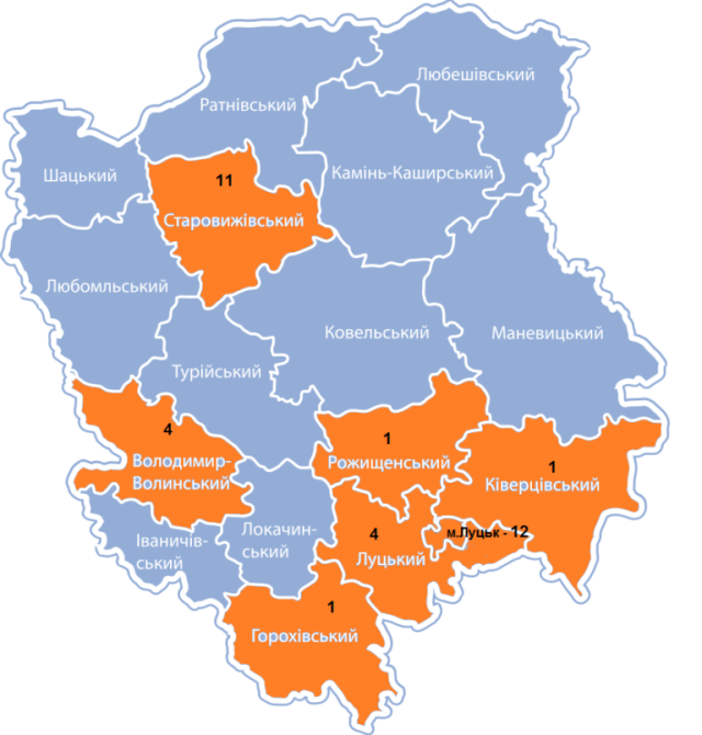 Серед тих, хто захворів, – троє дітей віком до 7 років (Луцький район, смт. Стара Вижівка, м.Володимир-Волинський), всі інші 31 – це дорослі. У 9 хворих діагноз встановили при зверненні за медичною допомогою. У 25 осіб хворобу виявили при обстеженні людей, які контактували із хворими на COVID-19.