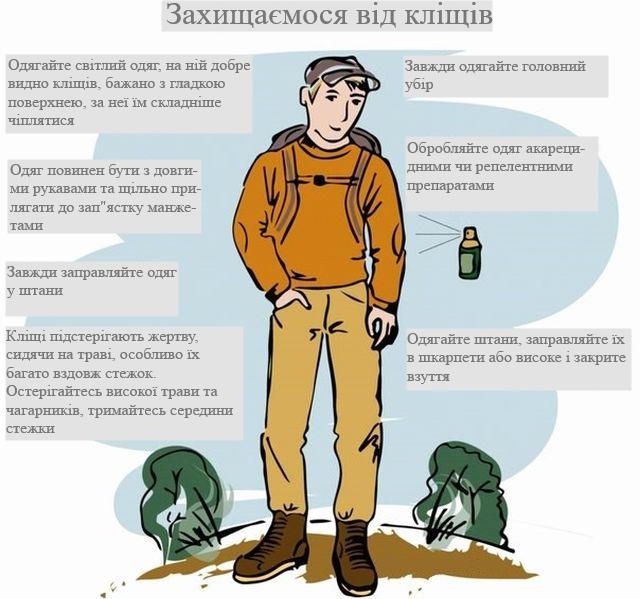 Варто також не забувати про само- та взаємоогляд відкритих ділянок тіла та одягу при поверненні з місць відпочинку. Будьте уважні, щоб відпочинок на природі не завдав Вам шкоди.