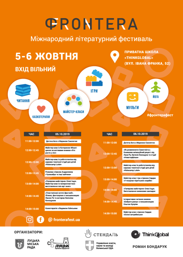 Вперше для юних читачів у Луцьку організували чимало заходів в рамках ІІ Міжнародного літературного фестивалю «Фронтера». 5-6 жовтня малечу та дорослих запрошують разом цікаво провести час.