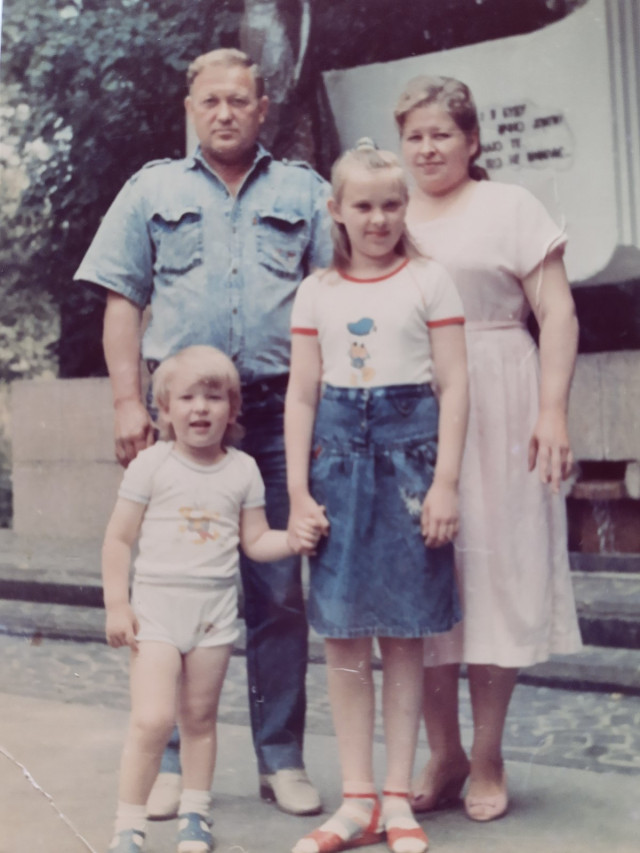Телефоном Любов Данилівна розповіла про те, як Чорнобильська трагедія змінила життя її родини, визначила пріоритети у роботі з дітьми: «У липні 1987 року спеціальним наказом спеціалізованого будівельного управління Івано-Франківського філіалу мій чоловік Віктор Іванович був командирований до Чорнобильської зони. Він працював газозварювальником протягом кількох місяців – з липня по жовтень того року в селах Шкнева і Бобри Поліського району. Додому приїздив на кілька днів, а потім знову повертався до роботи».Родина Дідиків: Віктор Іванович, Любов Данилівна, діти Анна і Олександр, 1992 рік