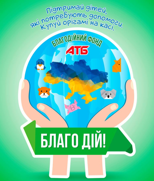 На кожній касі у дискаунтерах «АТБ» клієнтам пропонували за символічні гроші придбати яскраве листячко зі схемою оригамі. Для тих, хто не обізнаний із цим мистецтвом, автори надали QR-код із посиланням на докладну інструкцію. Кожен міг купити стільки, скільки вважав за потрібне. Усі зібрані кошти – майже 3,5 млн грн – компанія спрямує на надання цільової підтримки дитячим лікувальним закладам. Всеукраїнський благодійний фонд мережі супермаркетів закупить сучасне медичне обладнання для дитячих лікарень по всій країні.
