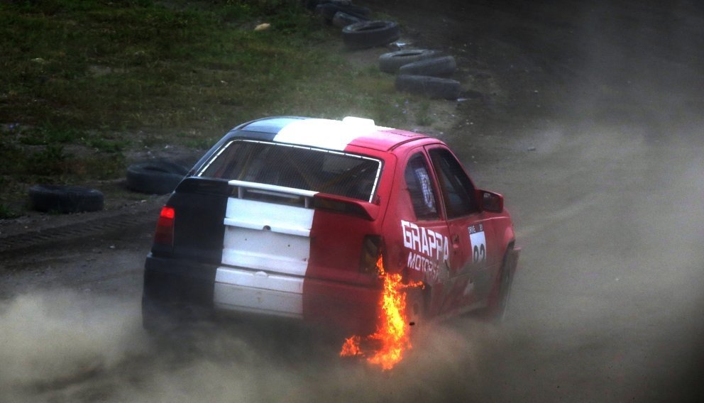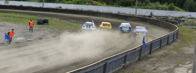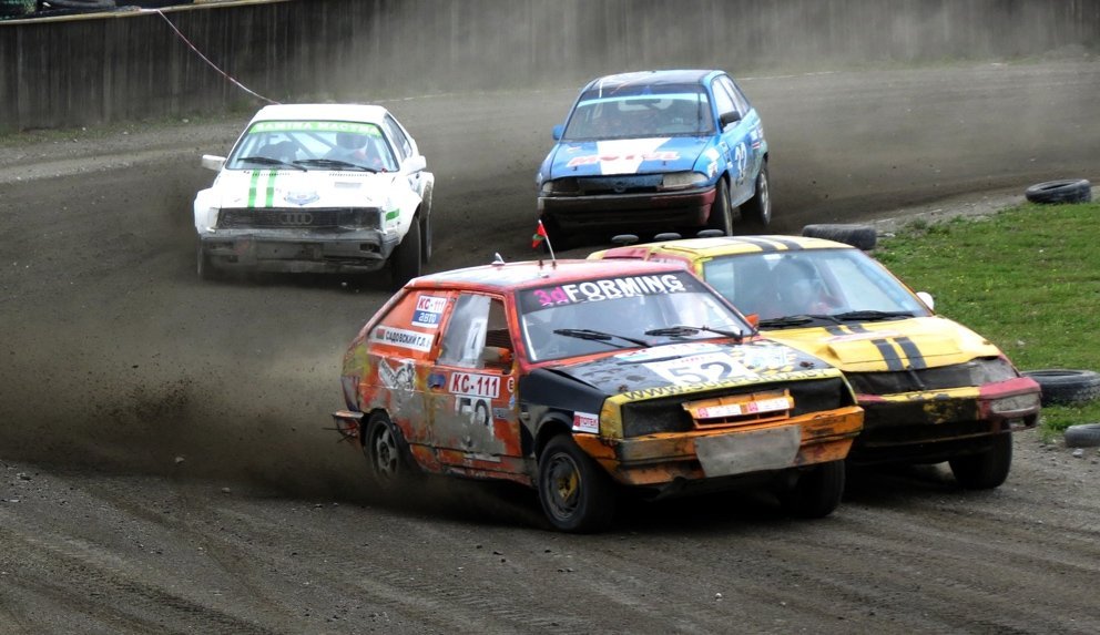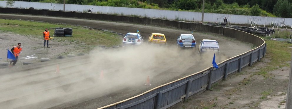 Четвертий заїзд проходить успішно для лучанина Олега Лустюка, який випереджає Сергія Лапицького і Максима Багелі. При цьому вже перед фінішем спалахує автомобіль Сергія Лапицькгого, який пролітає повз трибуни. Пожежу швидко загасили і Сергій зміг виїхати знову на трасу! Рахунок стає 15:9 на користь Білорусі.