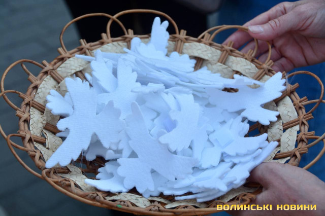 Сьогодні ми до того ж презентуємо гарний проєкт. Наша організація завдяки благодійникам закупила тканину для українського стягу завдовжки 40 метрів. На ньому ми розмістимо білих голубів, виконаних із фетру. На кожному – ім’я полеглого захисника. Цих голубів прикріплюватимуть родини полеглих воїнів. Цей прапор у нашій організації зберігатиметься до кінця війни. Можливо, з часом у нашій області відкриють Музей пам’яті, куди ми могли би його передати. Звісно, не хотілося би, щоб прапор поповнювався новими голубами», – розповіла Катерина Свищ.