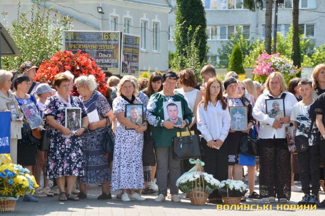 Напередодні Дня пам’яті захисників України, який відзначають 29 серпня, на Театральному майдані в Луцьку згадали всіх полеглих на російсько-українській війні воїнів, які віддали життя за свободу та незалежність нашої держави, починаючи з 2014 року. До традиційного заходу «Час не лікує» долучилися понад сотня сімей військових із Волині. Матері, дружини, сестри, доньки та сини, онуки прийшли з портретами своїх найрідніших.