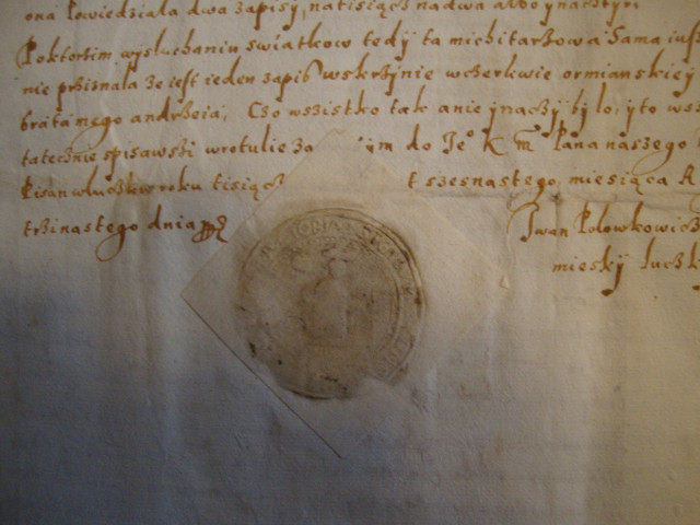 У міській війтівсько-лавничій книзі Луцького маґістрату в липні 1638 року зафіксовано скаргу райці Василя Шилневича на райцю й луцького міщанина Нестора Йовковича. Причиною скарги на урядника було те, що він привласнив ратушний ґрунт, розміщений над Стиром, поблизу будинку Андрія Корпилівця. Скориставшись службовим становищем, урядник Нестор «на тому готовому насипаному ґрунті ратушному» побудував власну солодовню, броварню та винницю.Міська печатка Луцька із постаттю Святого Миколая, 1612 рік