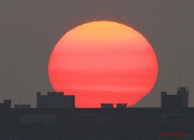 «АМОН-РА, на своїй колісниці, виїзджає на небесний пруг над Луцьком...День розпочинається...(так древні єгиптяни 4000 тис років тому, описували схід Сонця)», – підписав Віктор Чухрай фото.