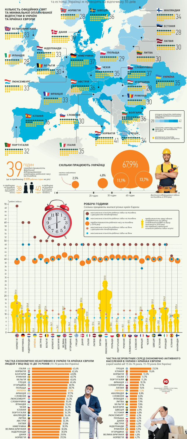 Скільки годин та днів на рік працюють українці та європейці - інфографіку про це опублікував журнал Новое Время.