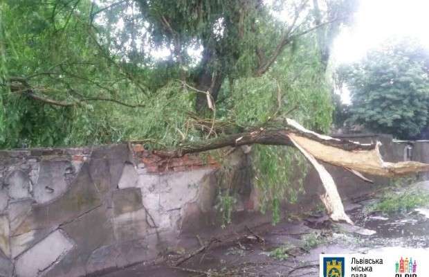 Через негоду у Львові зафіксовано багато випадків падіння дерев та великих гілок, які пошкодили лінії електропередач, деякі дерева впали на припарковані машини.