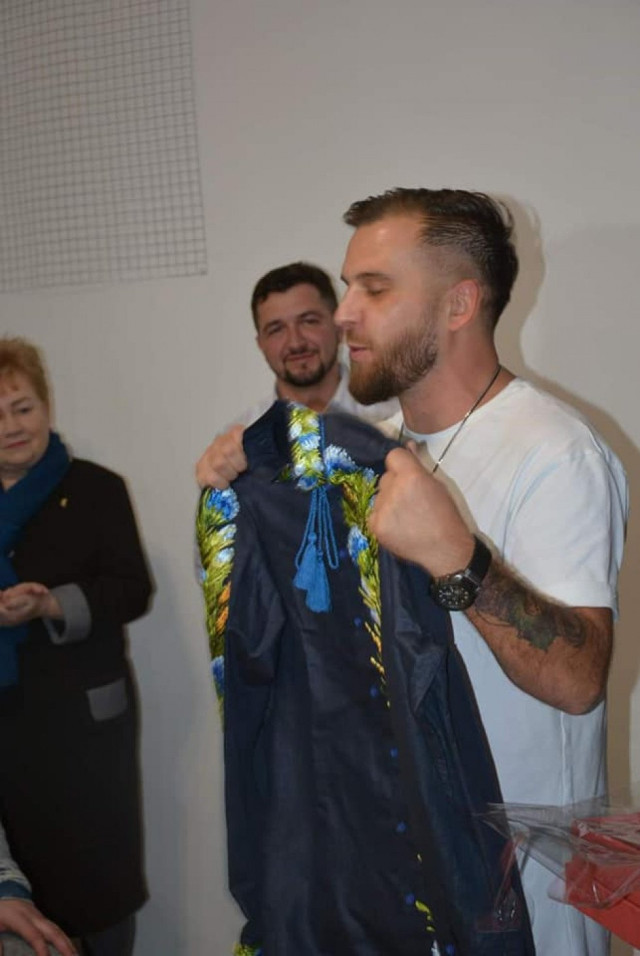 Солісту «Без обмежень» подарували в Луцьку сорочку-оберіг. Фото