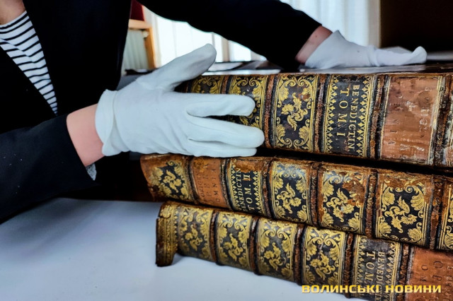 Про них Інформаційному агентству Волинські Новини розповіла провідна наукова співробітниця Волинського краєзнавчого музею Анна Юхимчук.1. Книга «Missae propriae Sanctorum…» латиною видана у 1771 році в Антверпені, який свого часу був видавничою столицею Європи. Це книжка для церковної служби, яка поєднує молитви, піснеспіви та нотні тексти.Стародрук дуже гарно оздоблений гравюрами (їхня особливість – використання червоного кольору) та мідьоритами. Одна з них – гравюра «Благовіщення» авторства відомого італійського гравера Антоніо Братті (1724–1787), роботи якого зберігаються у Музеї мистецтва Метрополітен в Нью-Йорку, в Британському музеї. Ініціали у книжці містять зображення монастирів або храмів. І для кожної літери зображення інакше. Вочевидь, це конкретні споруди у тогочасній Європі. У цих томах колись засушували рослини для гербарію, які збереглися і досі. На жаль, невідомо, якого вони часу.2. Дві книги «Systema naturae» («Основи природи») авторства Карла Ліннея, видатного шведського вченого природознавця XVIII ст., зоолога та лікаря. Книжка «Основи природи» є основоположною у сучасній біологічній систематиці рослин та тварин. За життя автора її видавали 12 разів. Самого ж Карла Ліннея називала «принцом ботаніків», «Плінеєм Півночі» та «другим Адамом».Попри те, що класифікація рослин та тварин Ліннея мала недоліки, власне сама система називати кожну рослину двома латинськими назвами (родовою та видовою) збереглася досі. А ще цей вчений перший створив квітковий годинник – систему визначення часу за відкриттям та закриттям квіток різних рослин.3. Стародрук з творами Аврелія Августина, а саме шостий том, багатотомної серії його праць має форзац, проклеєний папером з різнокольоровими абстрактними малюнками. Титульний аркуш прикрашений вазоном. Декор книги не дуже багатий, чорно-білий, на початку розділів прямокутні заставки, іноді невеликі літографії. Для кожної літери ініціалу є своє зображення, деякі оздоблені рамками з рослинного орнаменту, інші ж на фоні стилізованих зображень храмів.Ця книга була власністю останнього ректора колегіума піарів у Любешеві Антонія Мошинського (1800–1893), що засвідчено його підписом. Майбутній ректор у 16 років прийняв обітницю, а пізніше був ув’язнений за зв'язок з філоматами – польським таємним товариством студентів Віленського університету, серед яких свого часу був Адам Міцкевич, один з найвідоміших польських поетів.4. Три примірники творів Орігена (185–254), якого прийнято вважати автором найбільшої кількості коментарів до Святого Письма. Твори Орігена – перший систематичний виклад доктрини християнства, який одночасно породив чимало теологічних суперечок. Автор належав до Александрійської теологічної школи. Попри те, що деякі його теорії визнані помилковими, він є святим в Коптській церкві в Александрії (орієнтальна православна Церква у Єгипті, Африці, на Близькому Сході).У фондах Волинського краєзнавчого музею є три томи творів Орігена. Перший та другий томи вийшли у 1733 році, третій 1740 році у Парижі. На корінці зберіглось золоте тиснення із номером тому та рослинним орнаментом. Для друку книг використаний папір з філігранню у вигляді літери «А». Текст двомовний: кожна сторінка розділена на дві частини, де синхронно розміщено текст грецькою та латинню. Сторінки книги нумеровані не арабськими цифрам