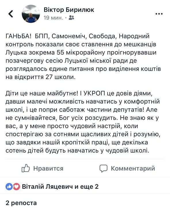 «Фракція БПП та, власне, Андрій Покровський, який є фактичним керівником фракції, не з’являються на сесію. Невже у президентській команді Савченко-Покровський виникло непорозуміння та неузгодженість?», - зазначає він.Натомість чимало лучан запевняють, що рішення про тимчасове зняття коштів на користь школи – правильне, адже до початку навчального сезону залишилось обмаль часу.