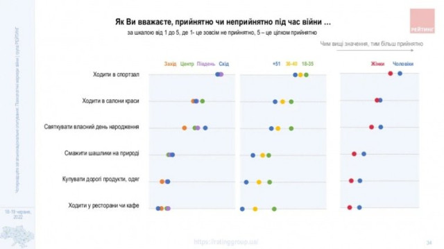 покупка дорогих продуктів чи одягу (36%).«Самозаборону» частіше влаштовують люди старшої вікової групи. Вони вважають неприйнятним купівлю дорогих продуктів, одягу та відвідування ресторанів і кафе.