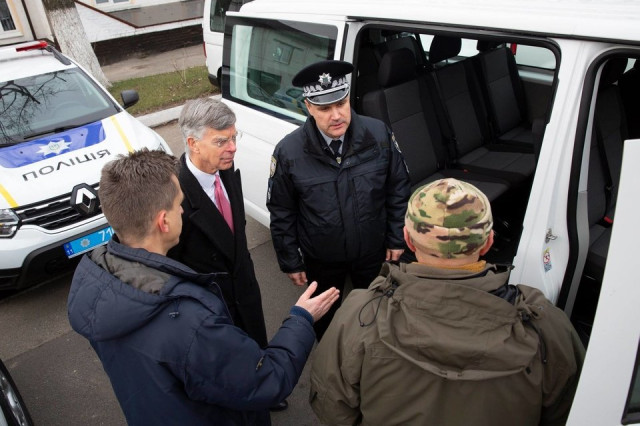 «Американські партнери передали українським поліцейським 88 автомобілів. У церемонії передачі транспорту взяли участь тимчасовий повірений у справах США в Україні Вільям Тейлор та голова Національної поліції України Ігор Клименко», – йдеться у повідомленні.