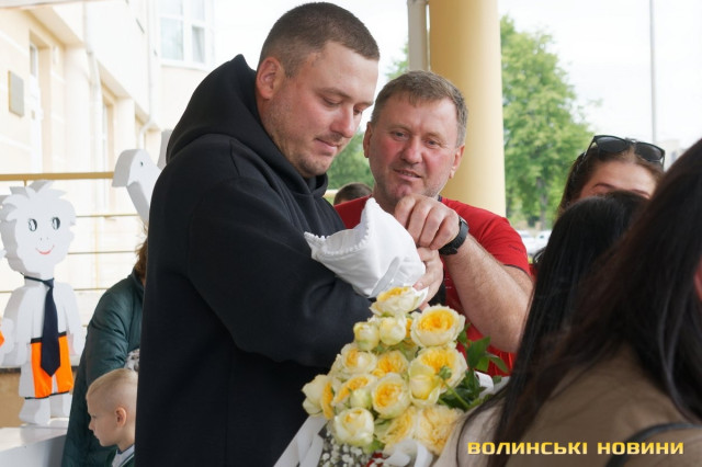 У Віолети народився уже третій син. Її та малюка прийшли зустрічати чисельні родичі та друзі. Чоловік-військовий Віолети нині боронить Україну від окупантів.Ірина Горавська звернула увагу, що жінка теж не сидить склавши руки. З 24 лютого вона волонтерить, наприклад, неодноразово привозила потрібні речі малюкам і мамам, які перебували в перинатальному центрі.
