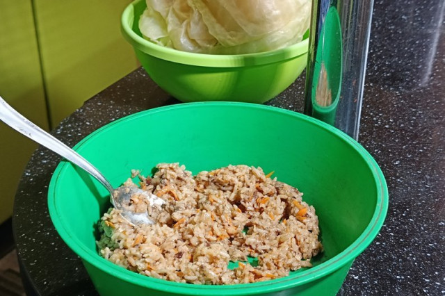 «На склянку рису даю пів літра перекручених грибів. Дві-три морквинки, дві-три цибулинки. Як тушкуються голубці, то заливаю настоєм з грибів сухих, він додає насиченого грибного смаку й аромату», – каже жінка.Начинку загортає у відварені листки капусти. Здебільшого листок розділяє навпіл, щоб голубці були невеличкими.