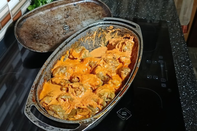 Щоб добре умліли, каже господиня, готує голубці в посуді із товстими стінками. У томатному соусі вони мають покипіти орієнтовно годину.«Я готую їх в гусятниці. Ставлю в розігріту до 200-250 градусів духовку, а коли закиплять, то зменшую температуру до 150, і воно так мліє. Я крапельку душі вкладаю у свої страви. І вони завжди смачні», – усміхається господиня.