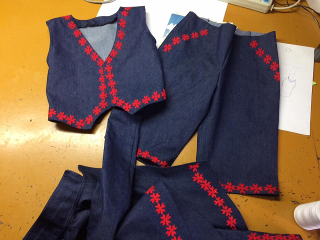 Колекція одягу для школярів, над якою працює Ольга, включає форму і для хлопчиків, і для дівчаток. Спідничку на шлейках, сарафан, штани та піджак для школярок молода дизайнерка вже пошила. Зараз закінчує працювати над формою для хлопчиків, яка складається з жакета, штанів та шортів. Ольга не лише створює дизайн одягу, а й сама кроїть, шиє, вишиває.