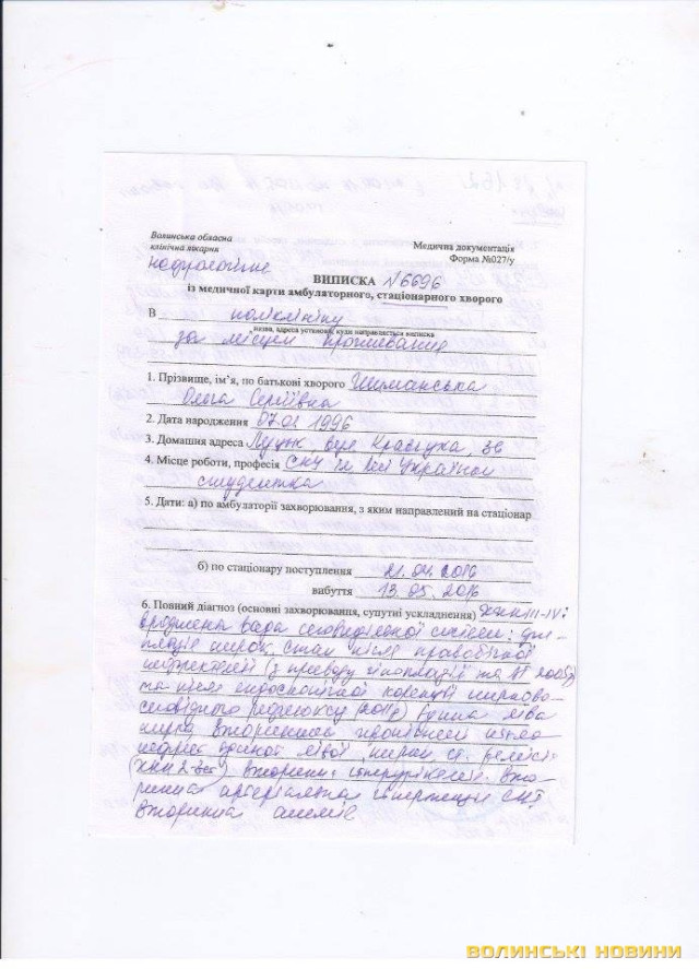 Як розповіли одногрупники Ольги, вона тривалий час намагалася приховати свою хворобу, однак півроку тому її стан погіршився і лікарі приписали їй багато ліків, на які у місяць батьки волинянки витрачають понад 10 тисяч гривень.