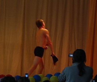 І на завершення: Дійсно. А чому би це мало не сподобатись авдиторії, яка у абсолютній більшості була дівчачою? Он, дехто, щоб подібне побачити, платить шалені грошики. А тут - нахаляву... Дівчата аж пищали (мабуть від отриманого задоволення). Тільки, подейкують, що у декана філфаку від такого мегавидовища нерви здали і він покинув залу задовго до закінчення конкурсу. P.S. А якщо автор новини дійсно непрофесіонал - то йому вдвічі честь і хвала. Це ж треба, щоб така лажова новина одразу потрапила у ТОП-5...