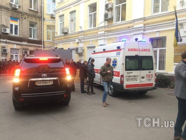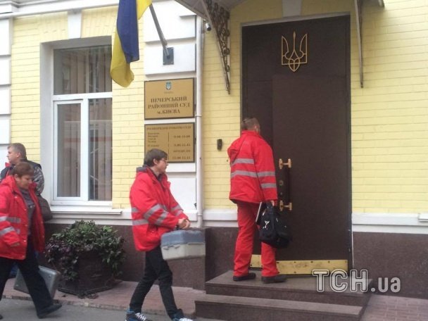 Окрім численних нарядів правоохоронців до Печерського суду приїхала і швидка. Як передає кореспондент ТСН, одному з присутніх стало зле.