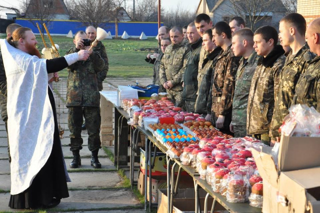 Священники освятили традиційні паски та крашанки, а також разом з бійцями помолилися за мир в Україні та побажали військовим любові, миру та злагоди.