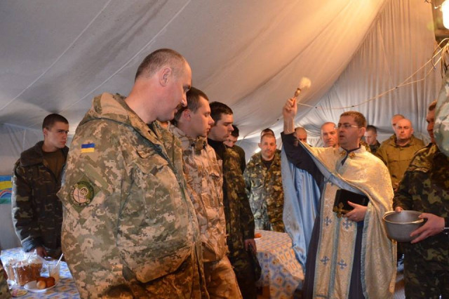 Для військовослужбовців Збройних Сил України, які виконують бойові завдання в зоні АТО, Свято Великодня розпочалося згідно із традицією – ранковою молитвою.