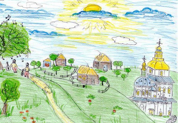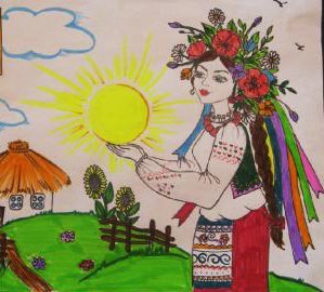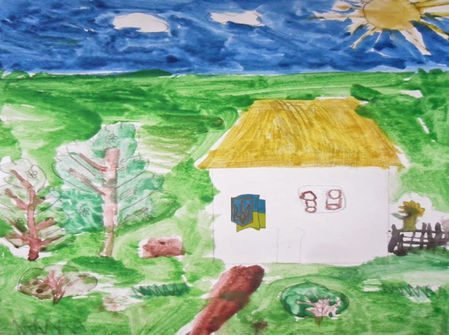 Маленькі волиняни малювали свої мрії про життя в єдиній Україні без війни. Синє небо, жовтий сонях, сині волошки, жовте сонце - чудове поєднання кольорів українського прапора. Тут же - заклики жити у мирі та дружбі.