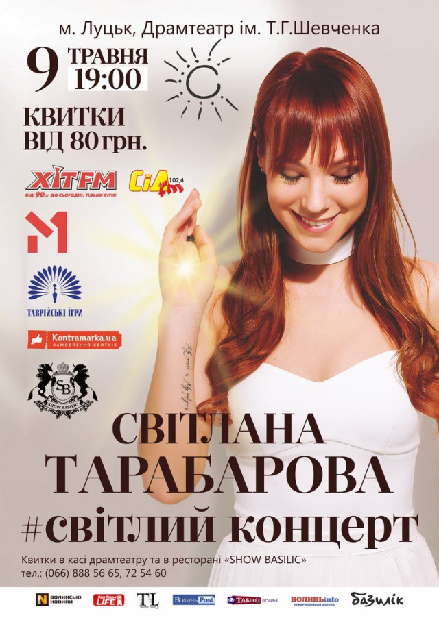 У рамках Всеукраїнського туру Світлана Тарабарова виступить у Луцьку з програмою «Світлий концерт».