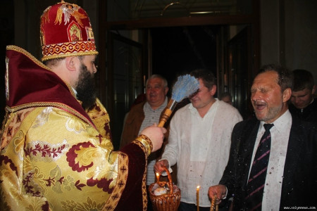 Владика Михаїл, своєю чергою, теж привітав волинян, щедро полив їх святою водою та наголосив на тому, що у цей світлий день варто усміхатись та бути щирими.
