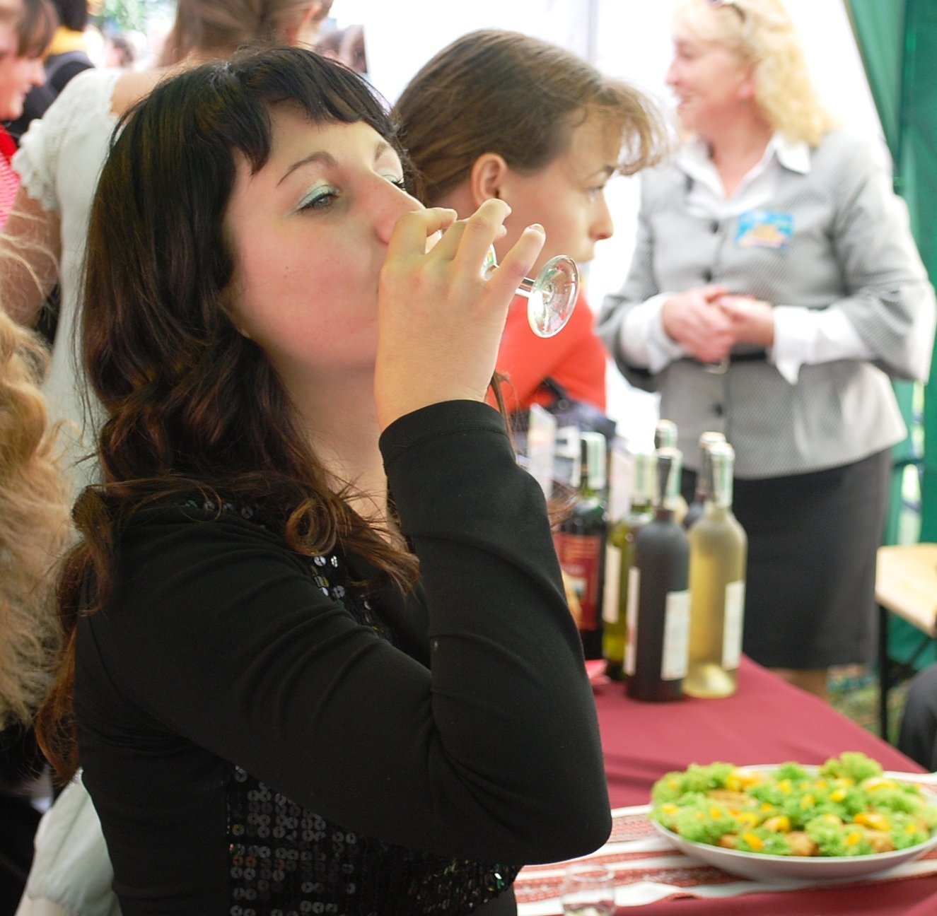 Гостя фестивалю дегустує полуничний крюшон, яким гостинні кулінари пригостили і журналіста «ВН».