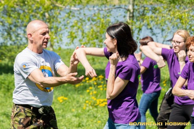 З його слів, обмін знаннями, енергією, емоціями дають чудовий результат.Цього дня ми мали нагоду взяти участь у тренуванні «Жіночого десанту» просто неба. І почалося воно не з традиційної розминки, а з такої собі мінімедитації, під час якої кожен міг осягнути свій зв’язок із природою, відчути себе її частинкою та налаштуватися на отримання нових знань.По тому всі старанно повторювали за тренером та його помічницею Маргаритою Бачинською елементи прийомів рукопашного бою.
