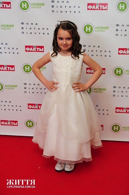 Маленькій героїні нагороду вручали Василь Вірастюк та Анастасія Заворотнюк, яка, вслід за Вірастюком, не побоялася забруднити своєї вишуканої чорної вечірньої сукні і стала перед дівчинкою на коліна.