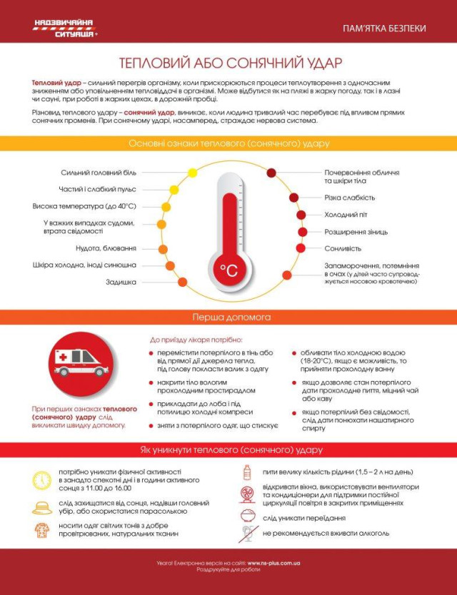 Пам’ятку безпеки на випадок теплового чи сонячного удару опублікувало спеціалізоване видання «Надзвичайна ситуація+».