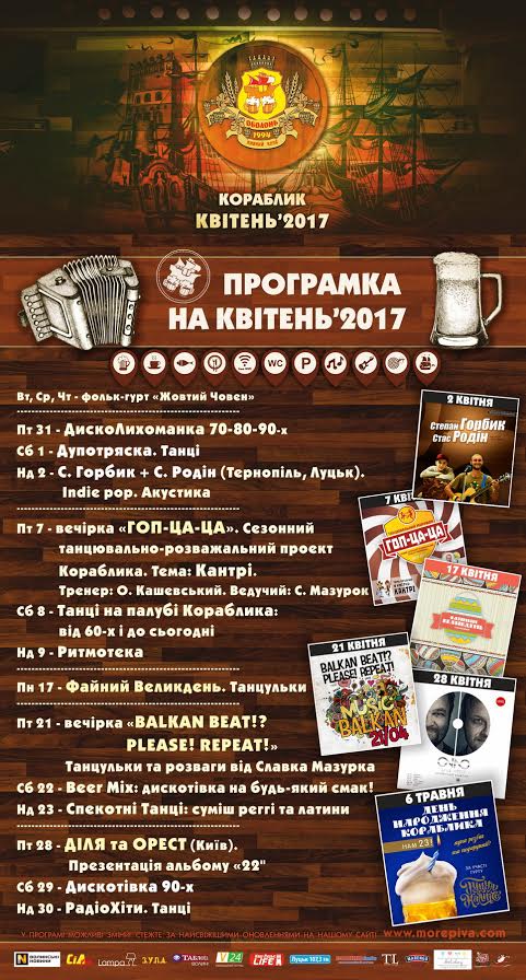 Молодий та талановитий музикант з Тернополя Степан Горбик дасть концерт у пивному клубі «Оболонь» («Кораблик»). Захід відбудеться 2 квітня о 21.30.