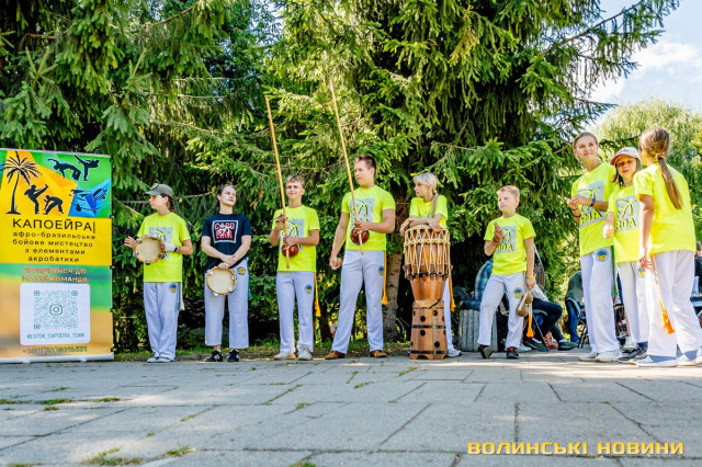 У парку гамірно, адже сьогодні тут – «Територія молоді». Від центрального входу, обабіч клумби, розташовано десятки локацій. Звуки музики переплітаються з ритмом барабанів – виступають майстри капоейро (а трохи далі – сучасного козацького бойового мистецтва), і поєднуються зі сміхом, вигуками, гомоном натовпу, ароматом кулешу. Кожен може знайти собі щось до вподоби, адже організатори потурбувалися, аби відвідувачам різного віку було цікаво та корисно.Усі активності – безкоштовні. І за це велика вдячність волонтерам, представникам громадських організацій та департаментів Луцької міської ради та особливо Фонду Ігоря Палиці «Тільки разом». Такі заходи – саме та допомога громаді, яка не впадає у вічі, але створює можливості для сотень дітей і дорослих провести час з користю, навчитися чогось нового, відпочити, відволіктись від реалій сьогодення.Читати ще: Нові ігри – нові переможці: біля Луцька відбувся другий літній турнір із футболу. Фото
