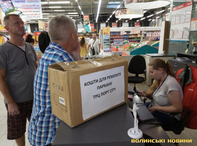Зібравши кошти біля торгового закладу, лучани пішли до адміністрації їх передати. Спочатку охорона не хотіла пускати мешканців сусідніх будинків, але згодом таки дали пройти. Працівники закладу довго вирішували, хто старший та компетентний прийняти гроші на паркан, а потім дали слухавку із директором на зв’язку, який пообіцяв зустрітися завтра з лучанами об 11:00 біля того ж паркану.
