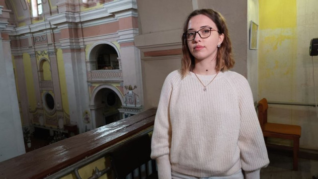 Вчиться гри на органі у Петра Сухоцького 19-річна Анжеліка Очкуренко. Дівчина – переселенка з міста Охтирка Сумської області. Повномасштабна війна застала її в Харкові, куди вона вступила навчатися до музичного коледжу.