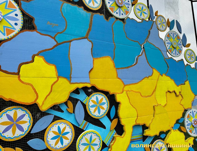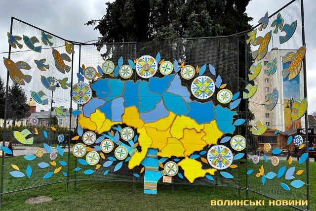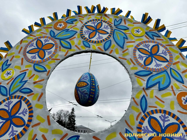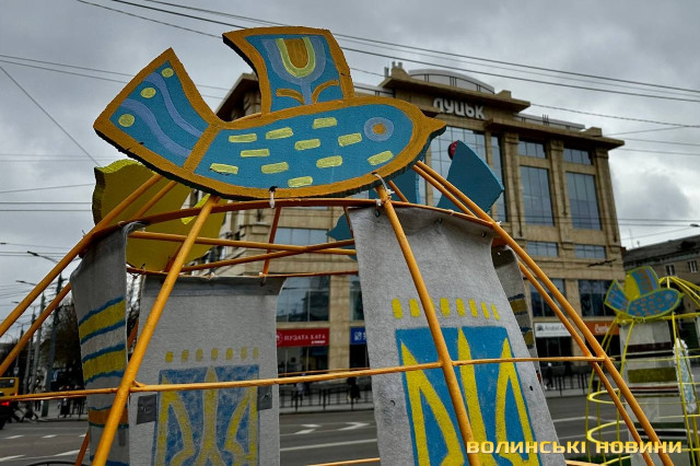 Центр Луцька прикрасили великою мапою, писанками і птахами. Фото