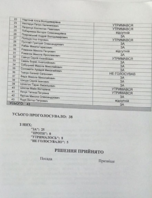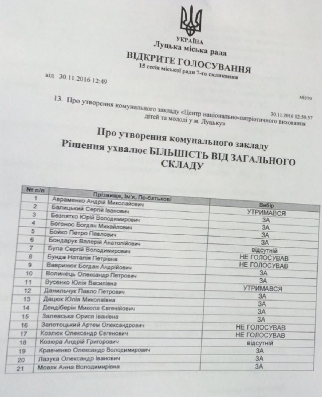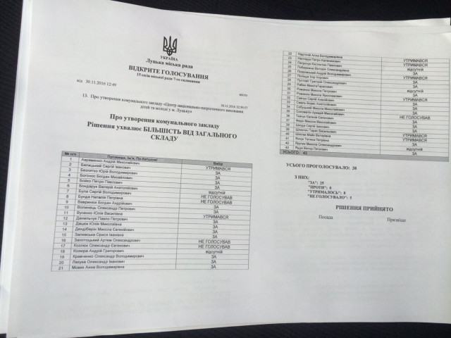 Зрештою, 25 обранці громади таки проголосували за створення комунального закладу Центр національно-патріотичного виховання. По тому градоначальник назвав створення закладу «помилкою», а в кулуарах у приватній розмові з депутатами додав, що авторам «хотілося когось на роботу влаштувати».