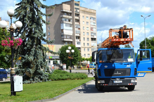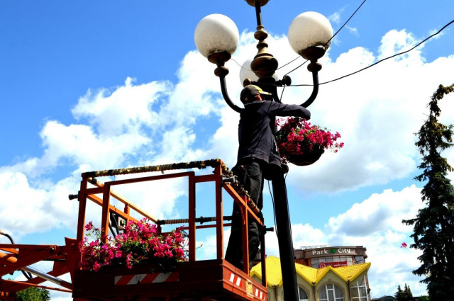 Працівники КП «Добробут» у Ковелі вивісили горщики з квітами на електроопорах вздовж вулиці Незалежності та на ліхтарях, що на площі Героїв Майдану.