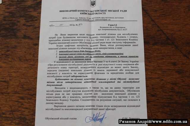 Чи то вони сполошили шахрая, чи то так зірки над Обухівською міськрадою стали, але у травні на адресу Івана Гані надійшла офіційна відповідь — відмова.