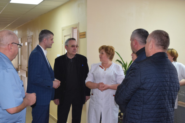 Під час зустрічі депутати облради від УКРОПу Вячеслав Рубльов та Олександр Омельчук передали матраци у хірургічне відділення, а також сухожарові шафи для стерилізації обладнання.