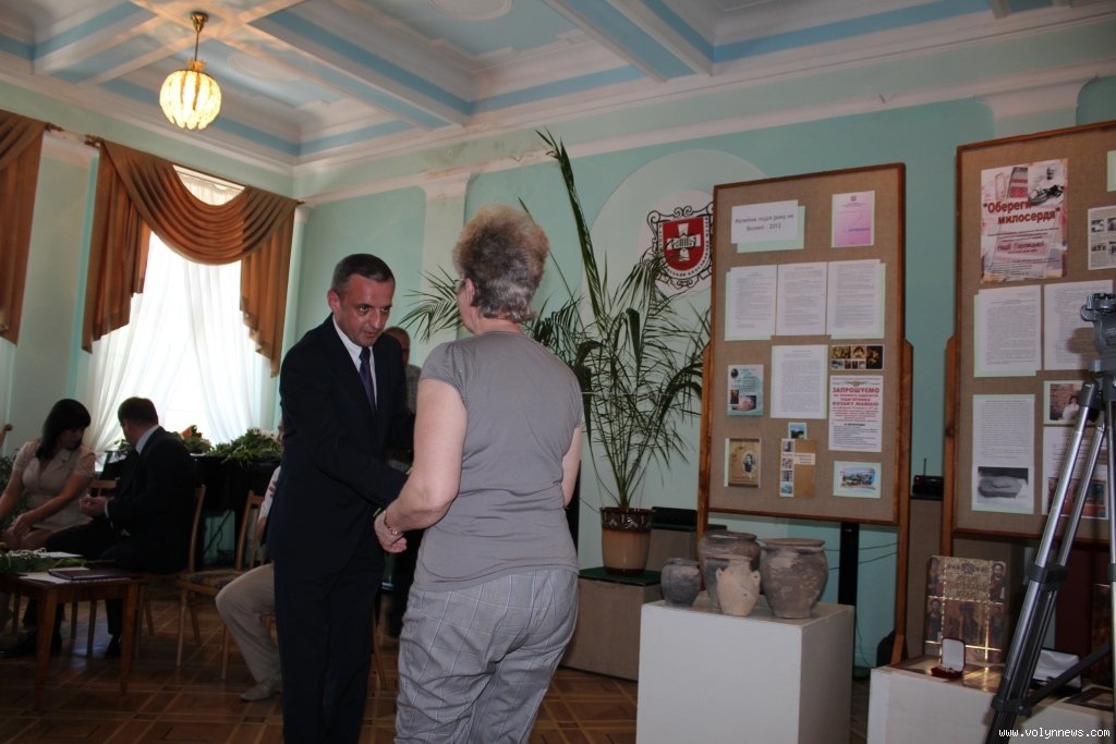 Олександр Курилюк вручив почесні грамоти та подяки голови ОДА та зазначив: «Ми надалі будемо допомагати музейній справі. Завдяки вам ми можемо поглянути на наше минуле через призму експонатів та експозицій. Робота музейного хранителя здається простою лише для непосвячених, насправді вона дуже нелегка. Оглянувши виставку фундаторів музейної справи, можна переконатися, що це великі люди, сподвижники. Я гадаю, що праця волинських музейників завтра, у міжнародний день музеїв, буде відзначена на всеукраїнському рівні».