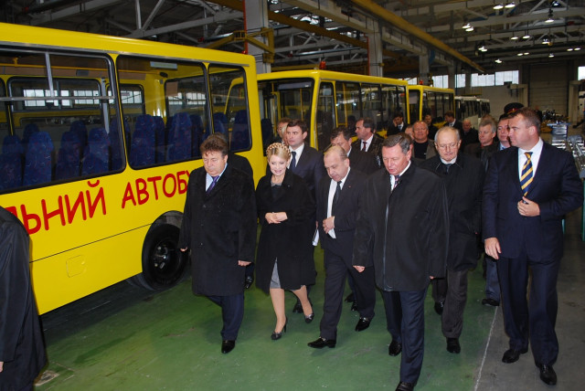«Так сталося, що тільки ваш завод в Україні має повноцінний сертифікат на виготовлення шкільного автобуса. Крім того, 65 % комплектуючих – українського виробництва» - сказала Тимошенко.