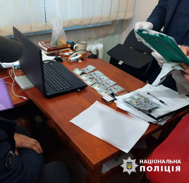 У службовому кабінеті слідчого поліції працівники внутрішньої безпеки та слідчого управління ГУНП у Волинській області, під процесуальним керівництвом прокуратури, затримали чоловіка під час передачі грошей.