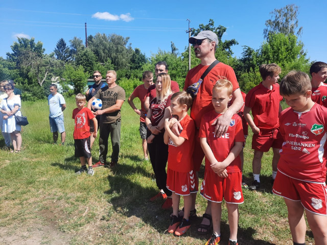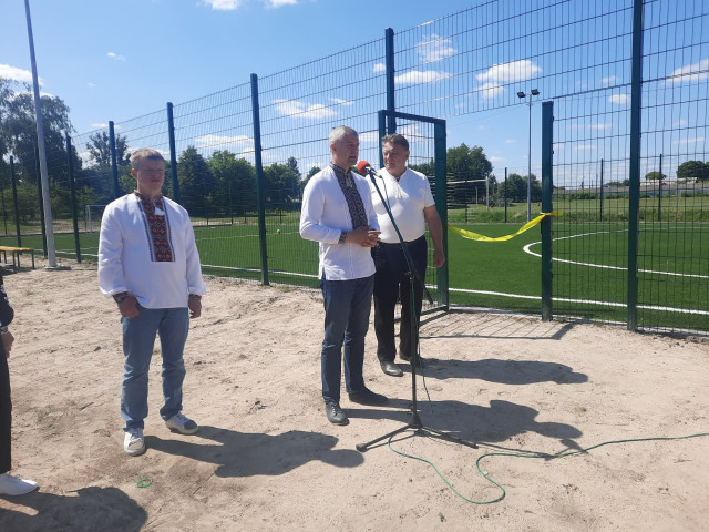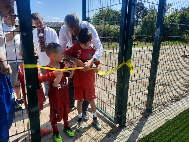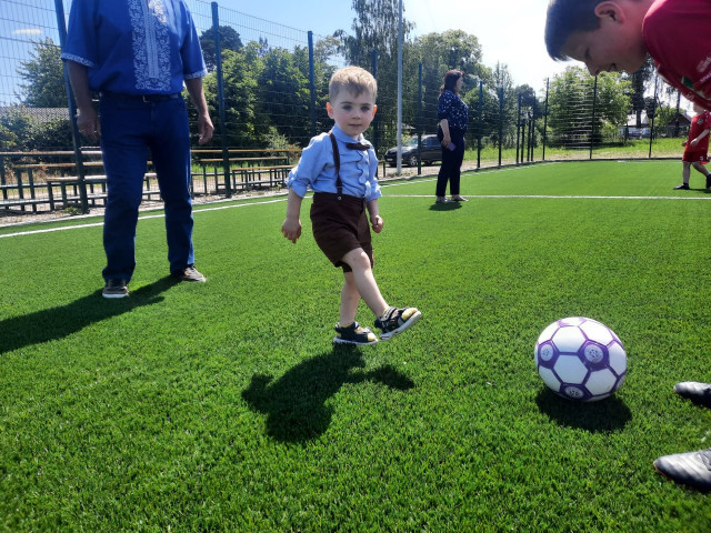 Традиційну стрічку на вході у новозбудований майданчик перерізали наймолодші футболісти. Вони ж і забили перший гол у ворота.