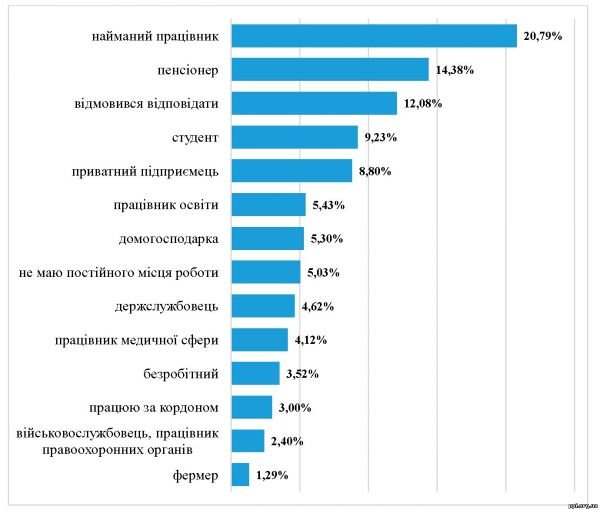 В ході дослідження було опитано 23 599 респондентів віком від 18 років. Серед опитаних: жінок – 52,50%, чоловіків – 47,50%. Похибка репрезентативності (вибірки) не перевищує 1,5%.