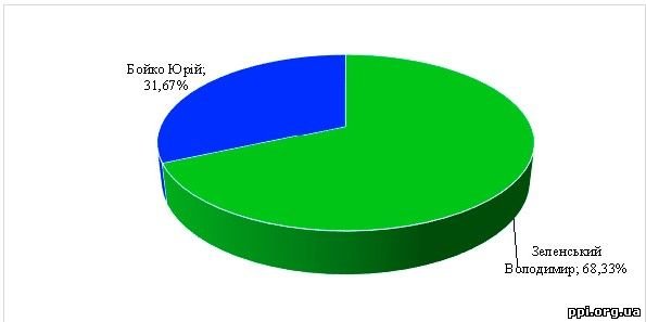 «Якщо в другий тур виборів Президента України проходять Бойко Юрій та Зеленський Володимир, якого кандидата ви б підтримали?»